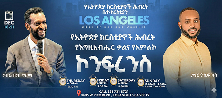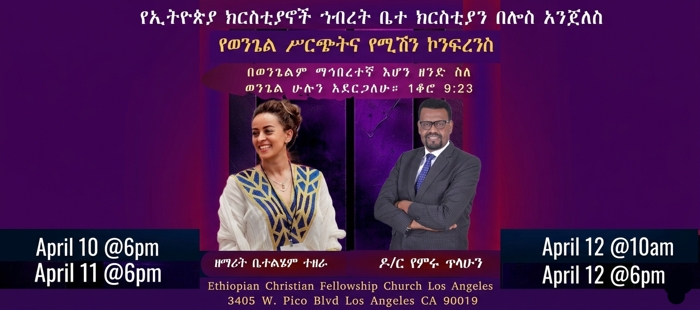 Welcome to the Ethiopian Christian Fellowship Church Los Angeles (ECFC LA) website. We are delighted to see your interest in navigating our site. ECFC LA is the oldest Ethiopian Diaspora church in North America. In addition to edifying the saved, the primary focus of our church is to reach out to the unsaved with the good news of the gospel. As a united body under Christ, our mission is to worship God in one accord, while declaring the good news of the gospel of Jesus Christ. Our Vision is to see ourselves become disciples of Jesus Christ to the Multitudes responding to the good news. If you have any questions or suggestions, please feel free to contact us at (323- 731-8721) and at ethiochristianfellow@gmail.com.